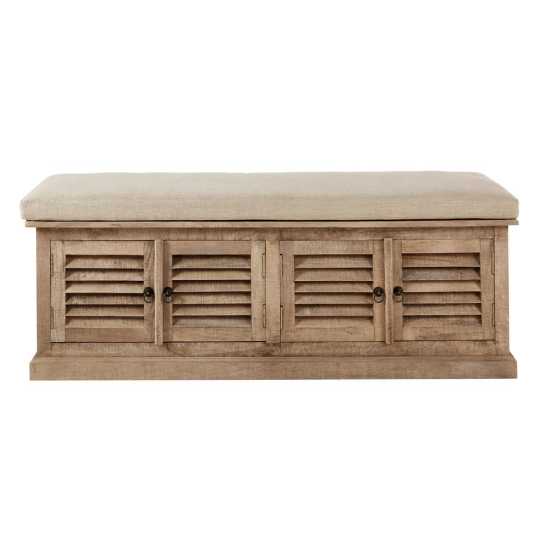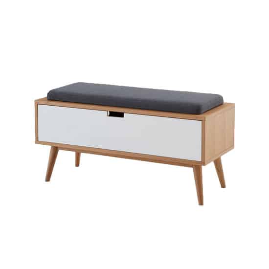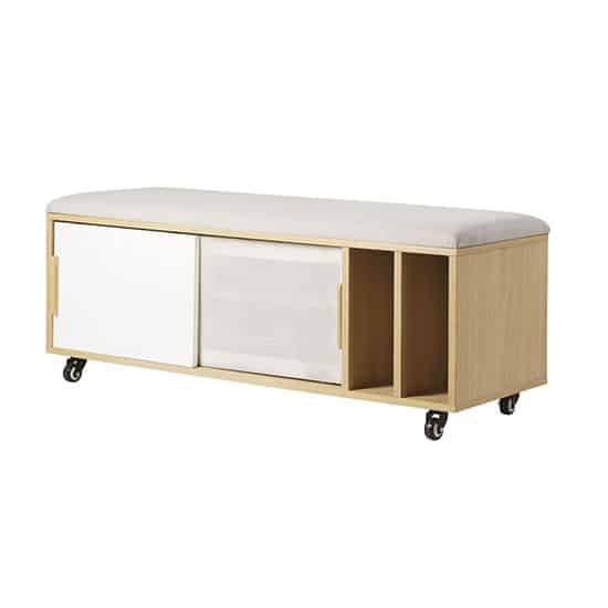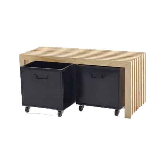 Cette pièce peut à la fois faire office de siège, tout en dissimulant les vêtements, magazines ou chaussures en un clin d’oeil.