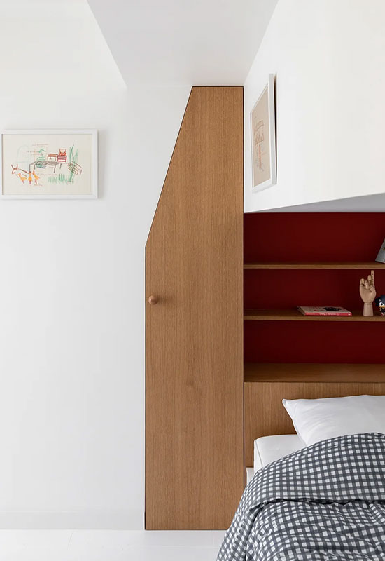 En tant qu’architectes d’intérieur, nous essayons de dessiner et construire des éléments les plus intégrés possibles et de créer un maximum de rangements.