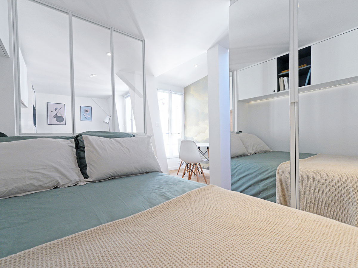 Le challenge est de créer une chambre cocooning malgré la petite surface !