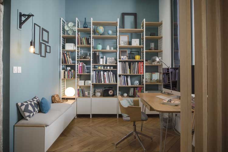 Comme tout projet nous avons tout d’abord travaillé sur le projet d’aménagement intérieur : les plans d’aménagement, les visuels 3D, le choix des couleurs et des matériaux. Une fois le projet validé, le chiffrage précis des travaux a été effectué et le chantier a pu commencer. Les différents corps d’état sont alors intervenus pour donner vie à ce projet. Aucune grosse difficulté rencontrée et heureusement! Une bonne surprise en découvrant un mur de pierre dans la cuisine. Mon conjoint a, quant à lui, créé beaucoup de notre mobilier (société Gentlemen Designers) : tables, bibliothèque, tabourets de bar, bureau…