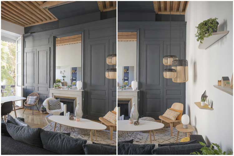 Le projet Home Sweet Home est mon appartement et celui de mon conjoint que nous avons rénové en 2016. Nous avons eu le coup de cœur pour cet appartement ancien. Nous avons tout de suite vu son potentiel et ce que l’on pouvait en faire. Un charme fou avec ses poutres, son parquet, ses cheminées… J’adore travailler l’ancien afin de révéler le potentiel du lieu. Beaucoup de travail, un vrai investissement personnel pour créer l’ambiance que l’on souhaitait. C’est un véritable cocon pour nous où on peut se retrouver et échanger au quotidien. On s’y sent bien et c’est ça le plus important.