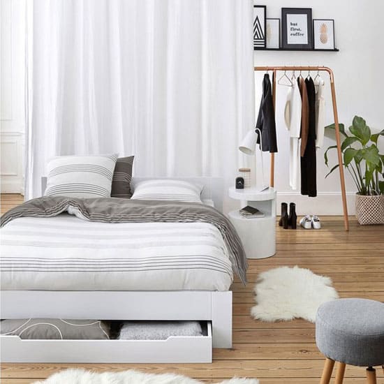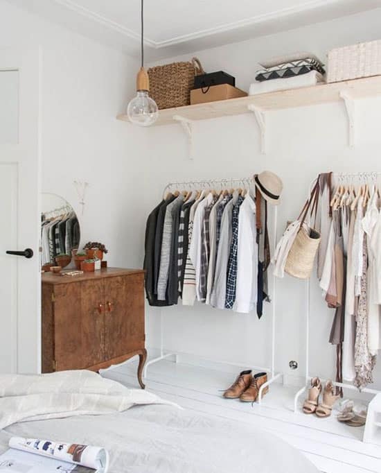 Comme évoqué en début d’article, un moyen de rangement pour les vêtements est indispensable à une chambre, afin d’éviter la sensation d’envahissement.