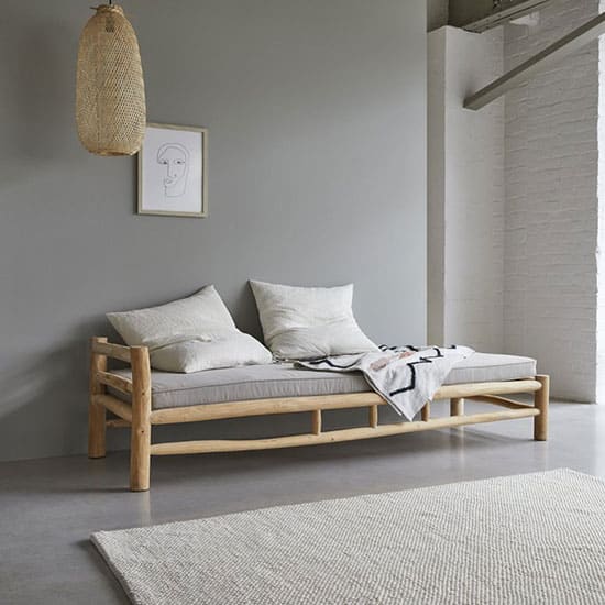 Cette méridienne est complétée d’un matelas gris clair qui en accentue l’esprit naturel et garantit un confort irréprochable !