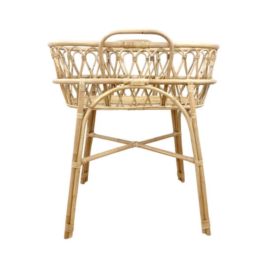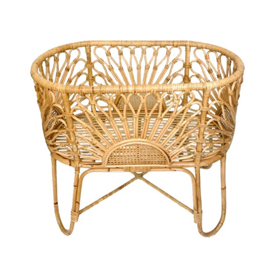 Grâce à sa petite taille et à sa structure ajourée, le berceau en rotin est adapté aux premières semaines du nouveau-né.
