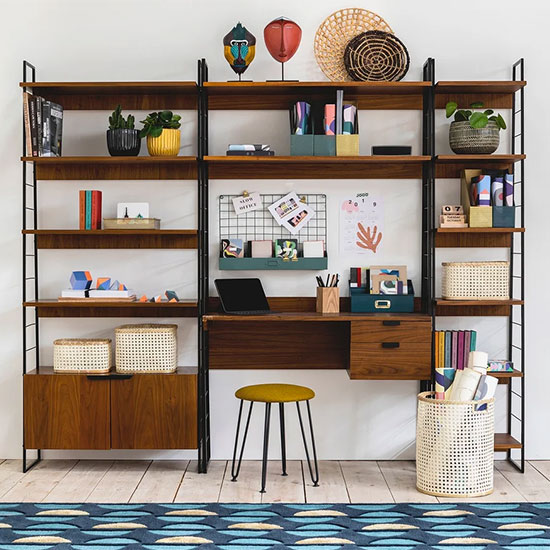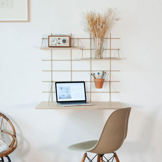 Si vous cherchez à libérer un maximum d’espace au sol pour votre coin bureau, pensez à ces étagères au rendu aérien.