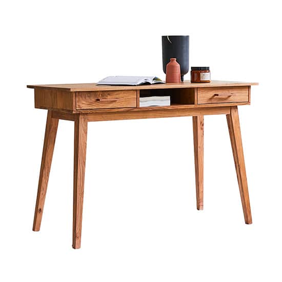Ce bureau en bois massif d’acacia ravira les adeptes de mobilier durable.