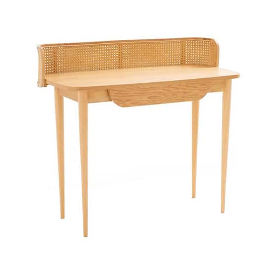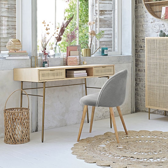 Amoureux de matières naturelles, ce bureau en bois et rotin est fait pour vous.