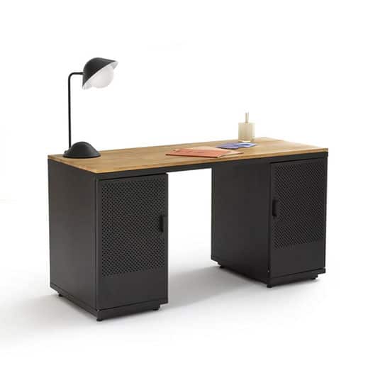 Ses deux caissons latéraux et portes en métal perforé permettront d’y ranger de nombreux classeurs et dossiers.