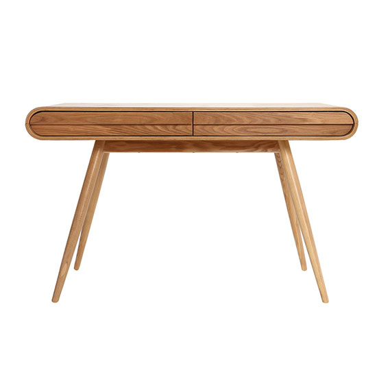 Tout en bois de chêne vous le choisirez soit monochrome, soit avec une combinaison pieds en bois clair et plateau de bureau foncé.