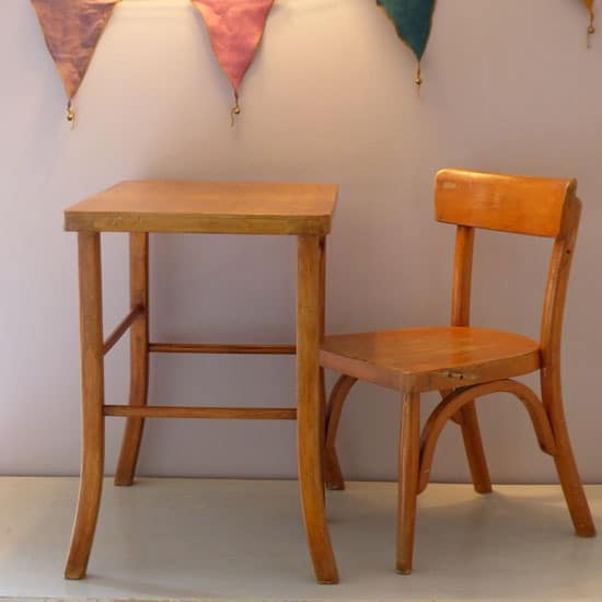 Vendue avec le bureau d’écolier qui lui est associé, cette chaise ravira les amateurs de vintage !