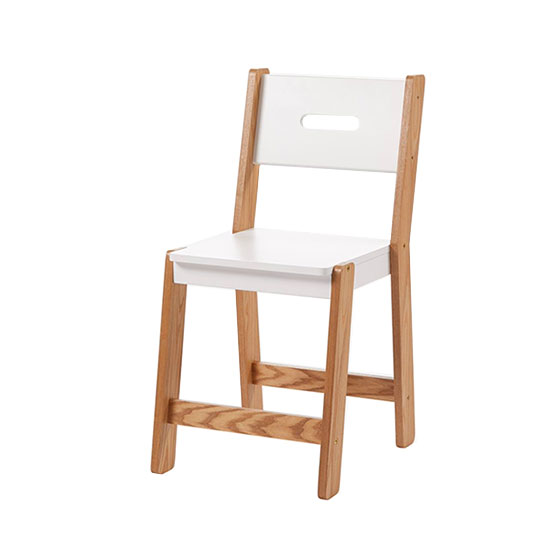 Avec son haut dossier à barreaux et ses pieds compas en bois clair, c’est une chaise scandinave revisitée pour les petits !