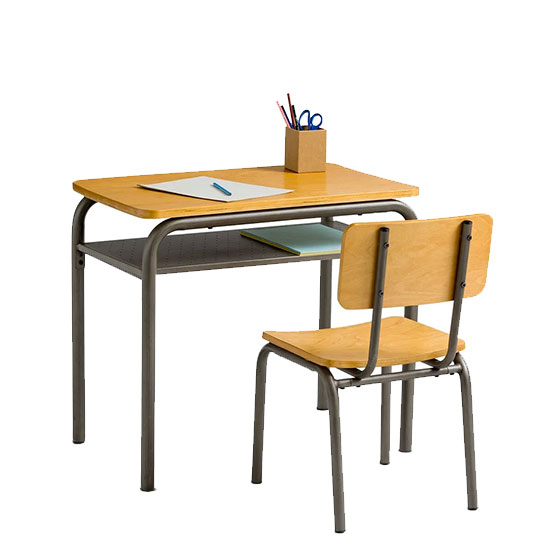 Assise et dossier de bois clair, structure de métal tubulaire : simple mais efficace, la chaise d’écolier par excellence !