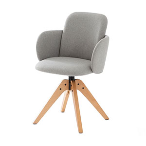 Description : Une chaise design rotative, avec un revêtement gris clair chiné ou vert sapin. Avec des pieds évasés en bois massif, stables et durables.