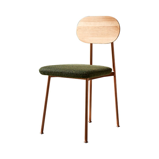 Ce modèle est élégant et moderne, grâce à des détails uniques : cuivre brossé, assise en velours et allure légère.