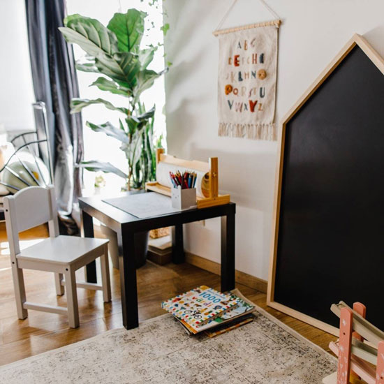 Misez sur des éléments amusants et pratiques comme avec un tableau noir pour laisser libre cours à la créativité de votre enfant.