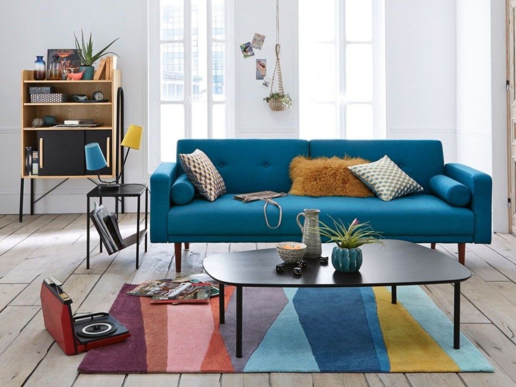 Le canapé est le point central d’un salon, autour duquel la déco (table basse, tapis etc.) va s’articuler.