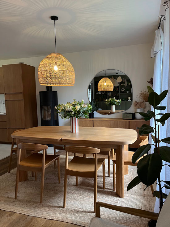 La table en bois extensible est la base qui apporte immédiatement de la chaleur et de la douceur à la pièce.