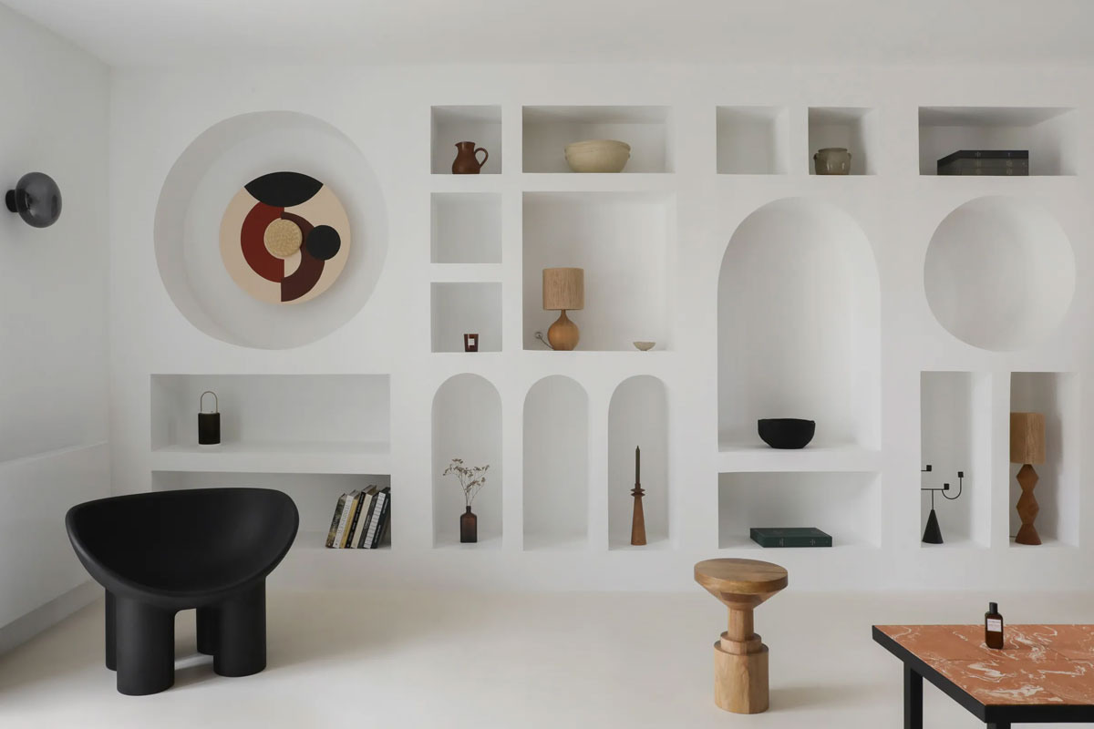 Les niches et alcôves de différentes dimensions permettent de jouer avec la déco et de mettre en valeur les objets – Heju
