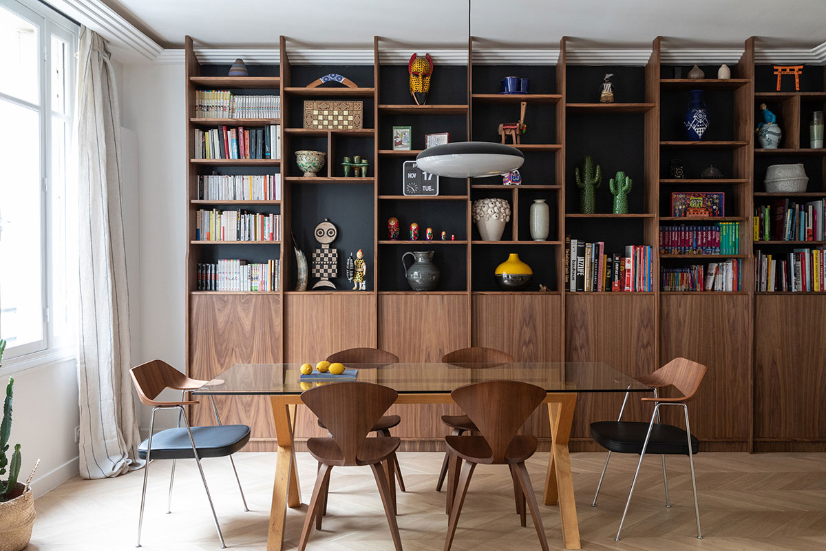 Intégrer une bibliothèque rend l’espace repas encore plus convivial et vivant