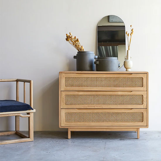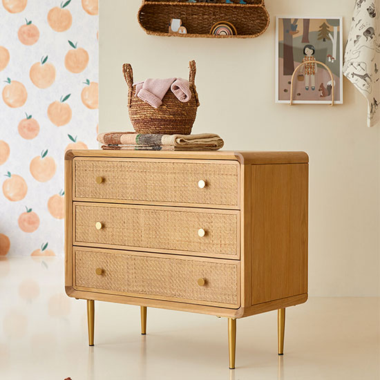Une commode en rotin qui se plaira dans une entrée nordique, une chambre adulte cosy ou une chambre bébé toute douce.