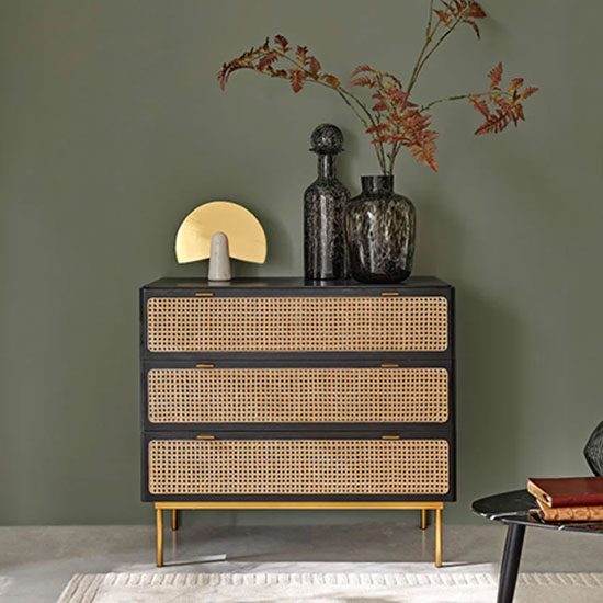 Fabriquée avec des matières nobles et habillée de cannage de rotin, ce meuble de rangement est terriblement séduisant.