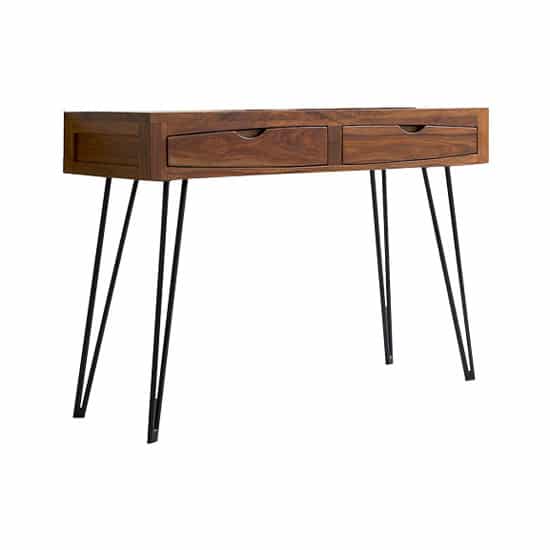 On aime la dualité et l’allure de cette console au bois massif et aux pieds épingles.