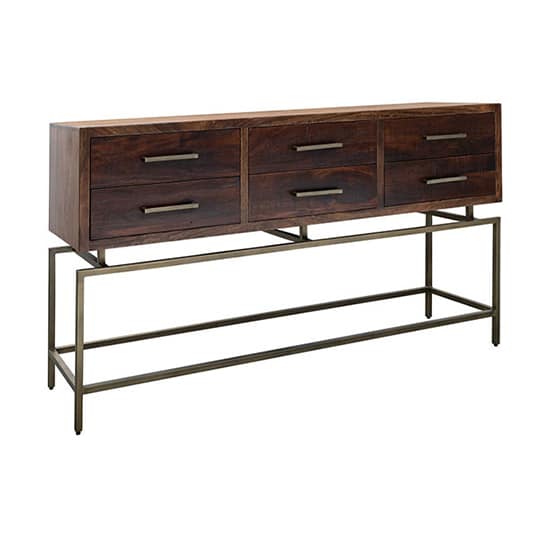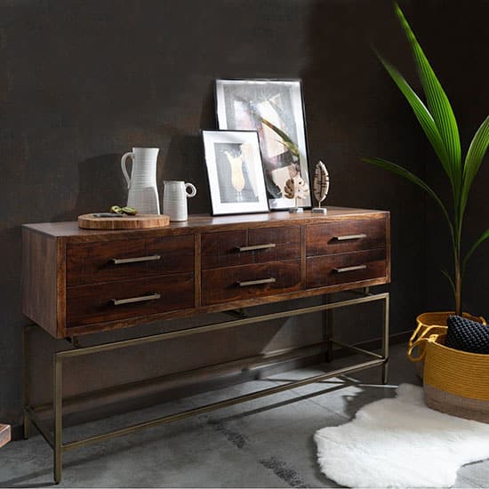 Le mélange des matières avec le métal et le bois de manguier massif permet à la console de s’inscrire dans plusieurs tendances.