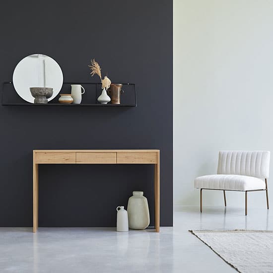 Avec ses 3 tiroirs, cette console peut également servir de petit bureau d’appoint, pour travailler à domicile.