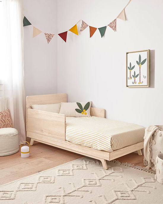 On aime les accorder avec du mobilier aux matières naturelles, comme un berceau en rotin ou une table de chevet enfant en cannage.