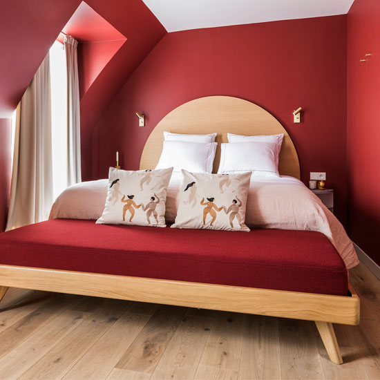 Dans la chambre à coucher, le rouge crée une ambiance chaleureuse et romantique.