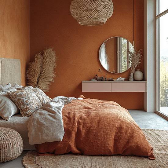 Réchauffez l’atmosphère de votre chambre avec une palette de couleurs chaleureuses.