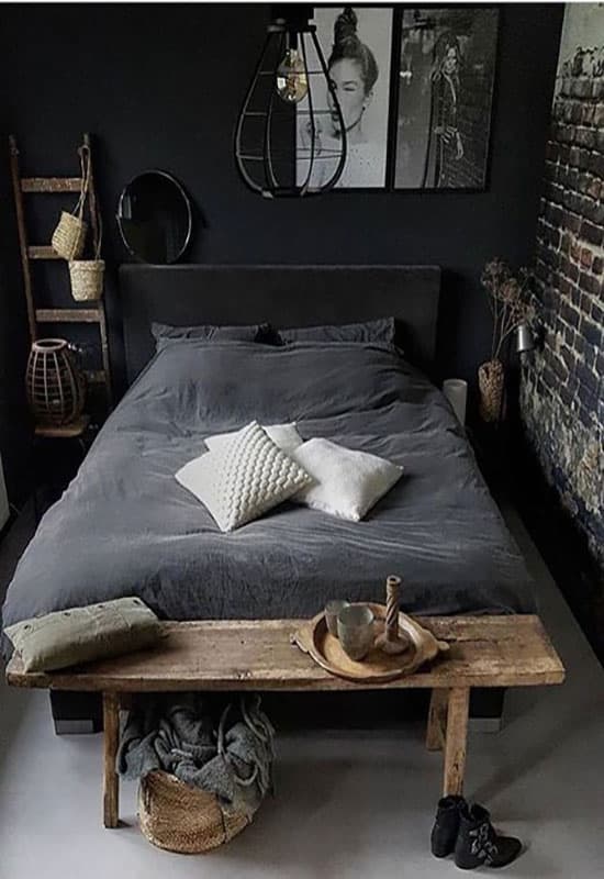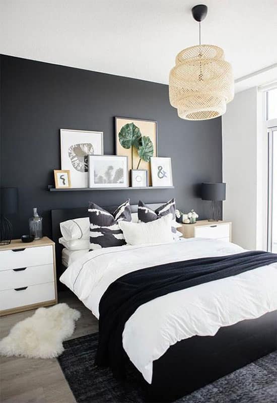 Une fois au mur, le noir valorisera le lit et la tête de lit et créera un mur d’accent très chaleureux et accueillant.