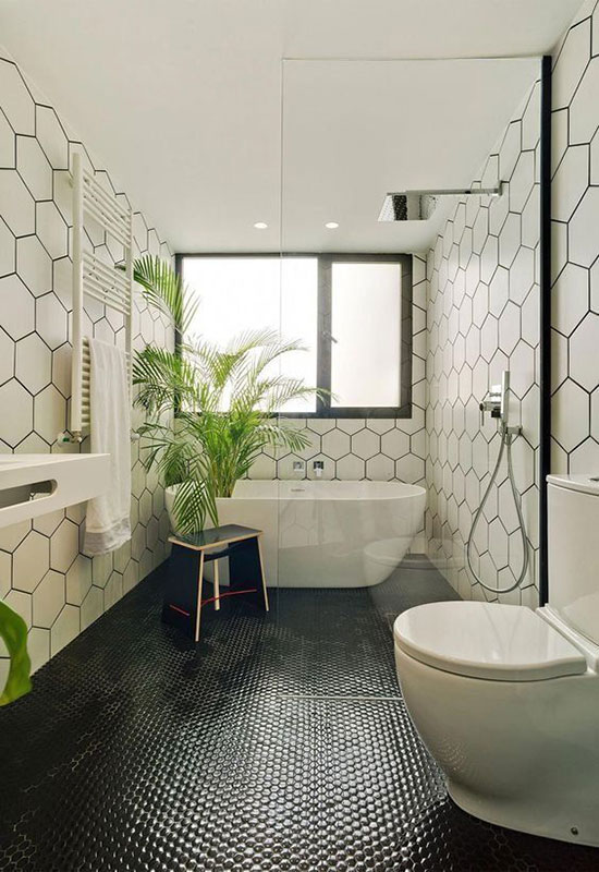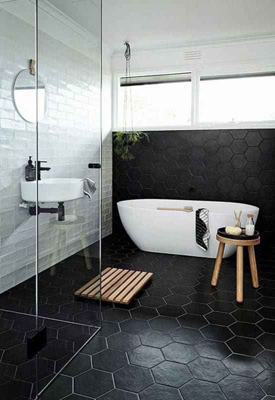 Faire des joints noirs sur un carrelage ou une faïence blanche apporte là aussi un effet contrastant très agréable, sans assombrir l’espace.