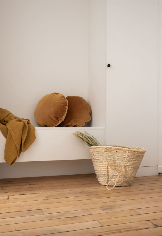 Ajoutez aussi des coussins en velours aux teintes complémentaires comme le vert sauge, le bleu nuit ou le terracotta.