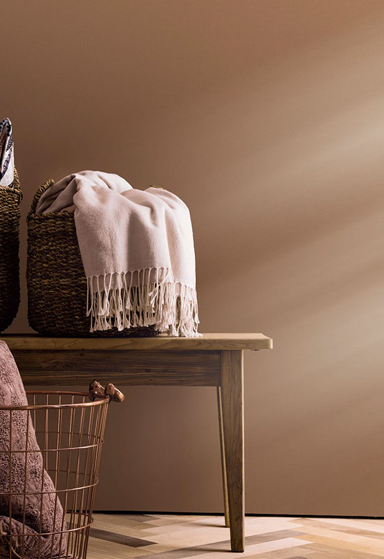 Elle contraste et réchauffe parfaitement les tons clairs comme le blanc, la couleur lin, le beige ou le gris perle. Pour une ambiance bohème ou nature, on l’associera avec des variations de vert.