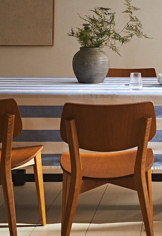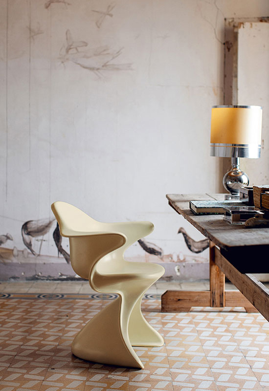 Elle s’associe à de nombreux tons et matières et habille la pièce en y déposant un voile de douceur.