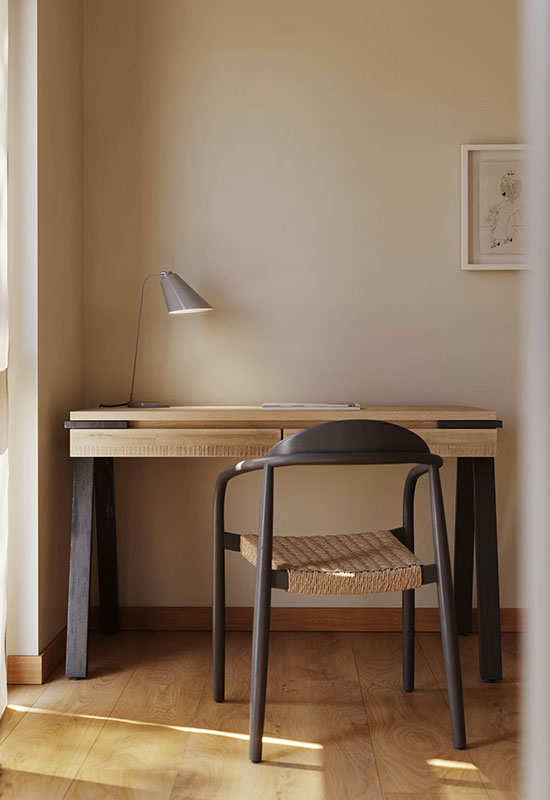 Le taupe s’adapte à toutes les pièces, y compris au bureau où le calme et la concentration sont de rigueur.