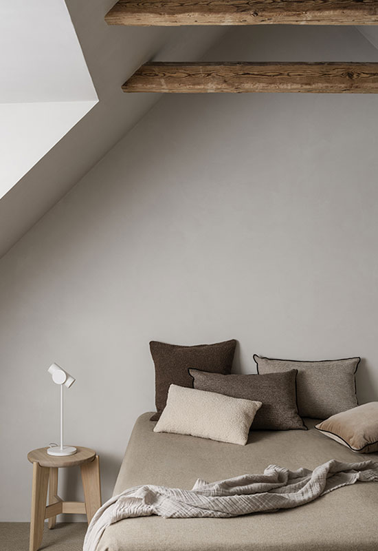 Et si vous hésitez encore à sauter le pas de la peinture, vous pouvez aussi choisir du linge de lit taupe, agrémenté d’édredons moelleux et de plaids fausse fourrure pour un lit cosy à souhait.