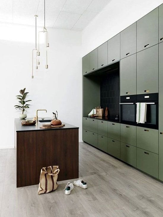 Si vous ne souhaitez pas passer par la case peinture, sachez qu’un meuble vert kaki est capable de faire toute la différence dans une cuisine.