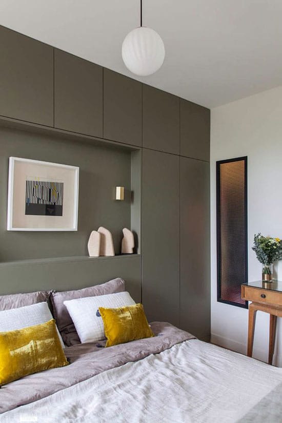 Ou habiller un pan de mur en vert kaki pour dynamiser une chambre à l’esprit épuré.