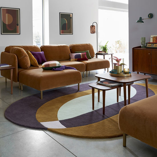 Le retour de la déco 70’s met à l’honneur un violet franc qui se marie superbement avec du jaune moutarde et du marron pour un look 100 % rétro.
