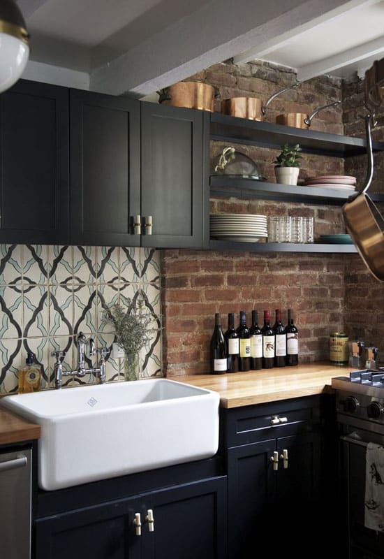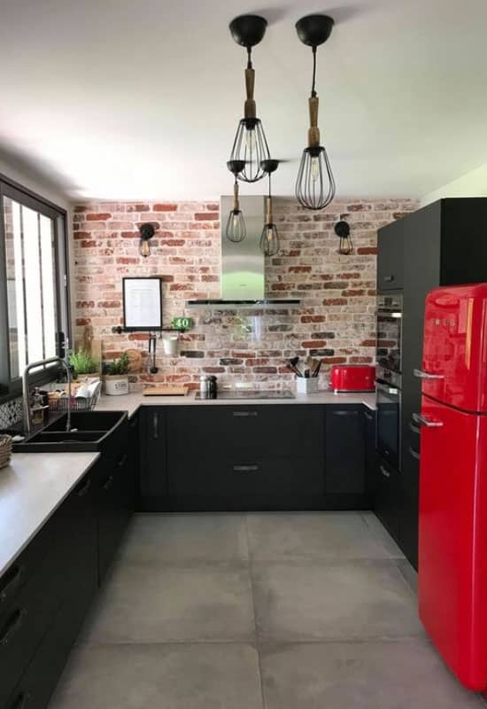 Réalisez un mur en briquettes, ou même en papier peint imitation brique, afin de créer une toile de fond à votre cuisine.