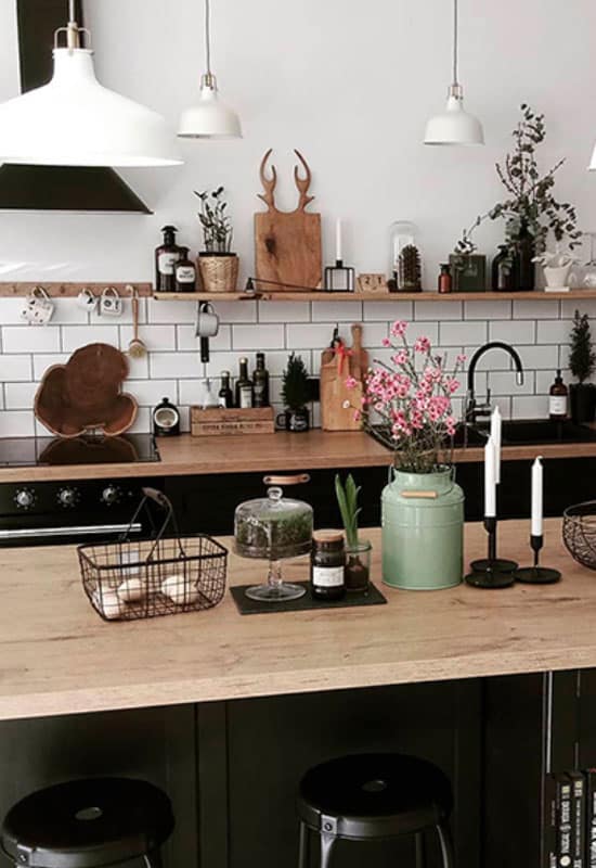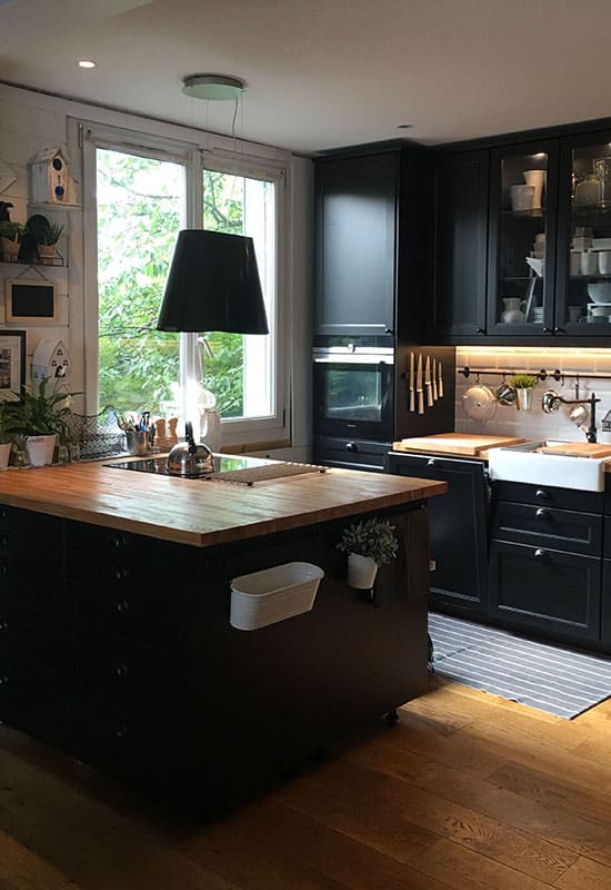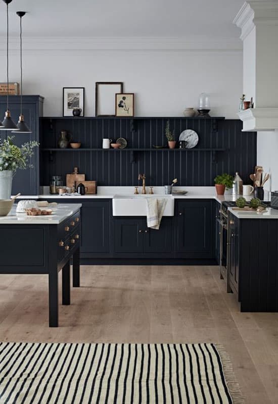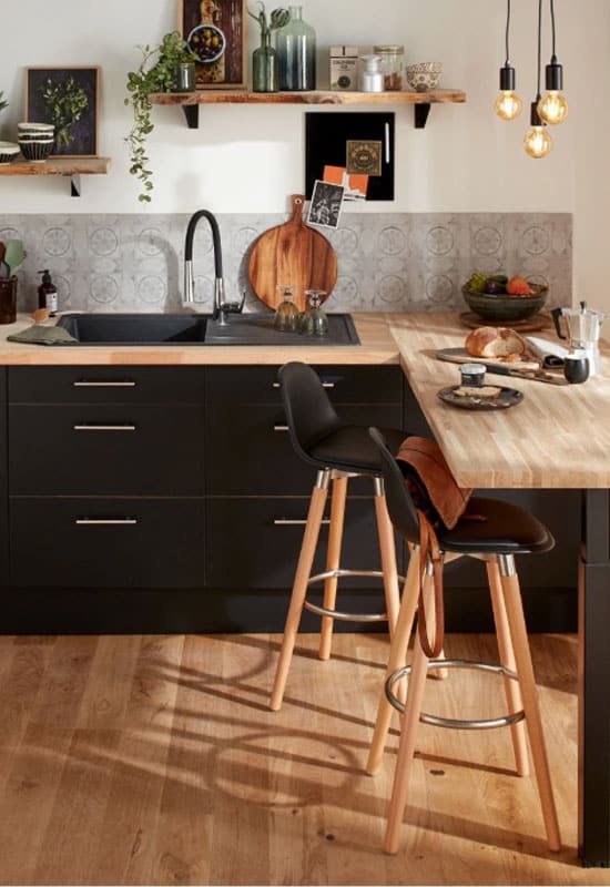 Le noir se cache également dans des univers beaucoup plus rustiques, une cuisine noire version campagne c’est parfaitement possible !