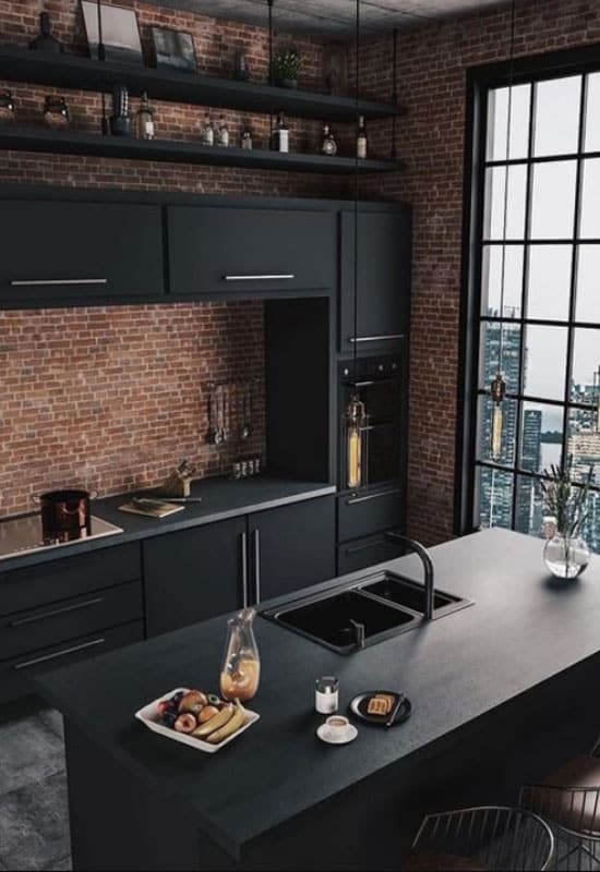 Une base de cuisine noire se prête naturellement à une décoration factory.
