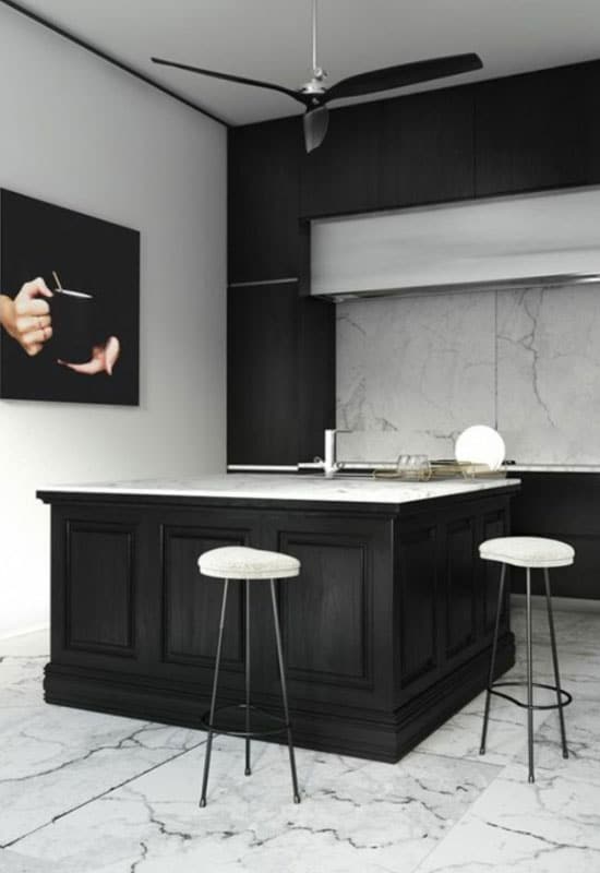 Si votre cuisine équipée est entièrement noire, donnez du contraste avec un mur clair, blanc, gris ou beige.