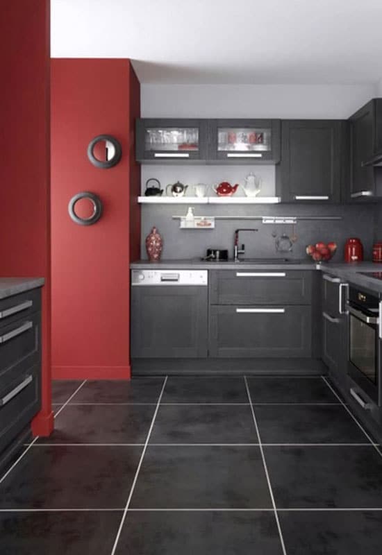 Le rouge est raffiné et chaleureux, tout ce qu’il faut pour accentuer le design d’une cuisine noire.