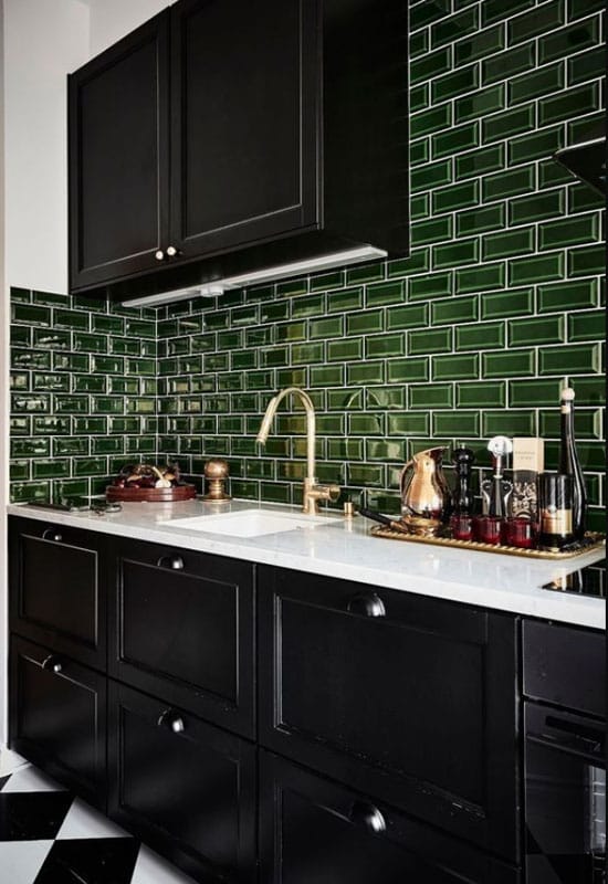 Vous voulez du pep’s ? Optez pour un vert émeraude, pour trancher avec le noir de la cuisine !