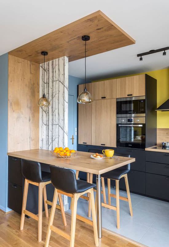 En effet, si votre table est installée en prolongement du plan de travail, optez donc pour une table de bar avec les tabourets assortis, dans l’objectif de créer une continuité.