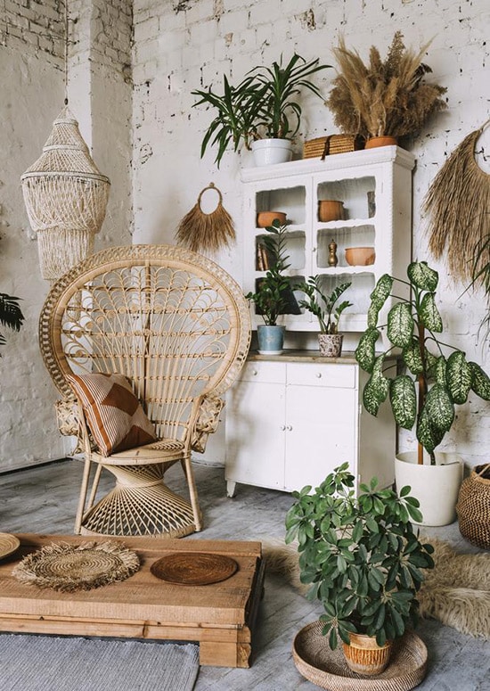 Pour une déco hippie chic, privilégiez les matériaux naturels et les fibres végétales, comme le bois, le rotin, l’osier, le lin ou le raphia.