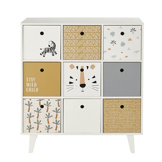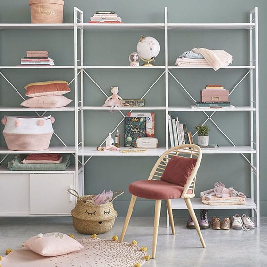 Des coffres colorés à empiler, des paniers à glisser sous le lit, une jolie penderie ou une commode pour enfant déco…